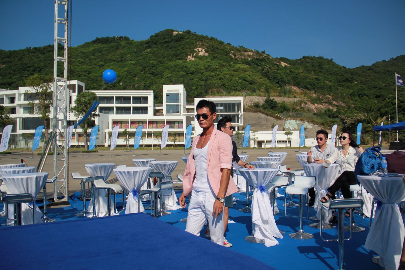 看!看!“古天乐”!作为身经百战穿梭各大活动比赛场所的新时代学校小记着,我都心动不已,真的是我的男神来了吗?哈哈!虽然后面经过证实不是真的“乐哥”,但是已经给我带来不少惊喜,更别说现场的观众了,他是世界潜水小姐的教练,正在为他的成员们专注的讲着彩排流程等等。